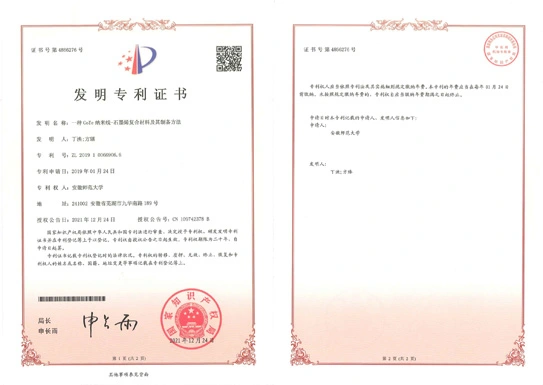 يكشف هذا الاختراع عن طريقة لإعداد مادة مركبة من الجرافين والأير النانوي ، والتي تتكون من أسلاك نانوية مشتتة في ألواح نانوية الجرافين. تتضمن طريقة التحضير تشتيت أكسيد الجرافين في خليط من N ، N-dimethylformamide والماء ، إضافة أسيتات الكوبالت ، NaOH ، وhydrazine hydrate ، التحريك المستمر لتحويل المحلول الوردي الشفاف إلى راسب وردي ، ثم إضافة تيلوريت الصوديوم وكبريتات دوديسيل الصوديوم لتفاعل التسخين. ليس فقط المواد المركبة من الجرافين والأير النانوية لديها قدرة كبيرة على التفريغ والتوصيل الجيد ولكن أيضا يسهل العملية الكهروكيميائية. علاوة على ذلك ، فإن طريقة وعاء واحد ليست بسيطة فقط مع قابلية تشغيل قوية ولكن أيضا سهلة التحكم ، مما يجعلها قابلة للتطبيق للغاية وقيمة لإعداد وتطبيق أجهزة تخزين الطاقة اللاحقة على أساس كوت.